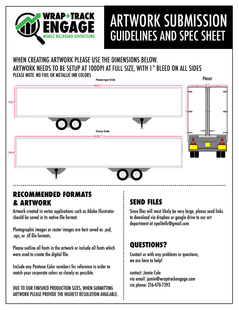 Your audience only has a moment to look at your message. Make sure your visuals and words are attention grabbing, easy to understand and memorable.For more information on producing your next wrap download our artwork spec sheet by clicking the button below.